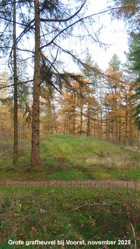 Op een gegeven moment kwam ik bij drie grafheuvels, een grote en een wat kleinere links van het pad, en een grote rechts van het pad.