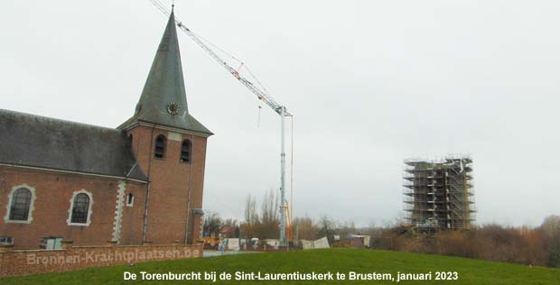Maandag 2 januari 2023 ben ik naar Brustem geweest en heb ik de Torenburcht bij de Laurentiuskerk bezocht. Helaas stond de Torenburcht in de steigers en verder heb op internet bijna alleen maar foto's gevonden van de Torenburcht in de steigers, zodat ik hier mijn eigen foto's heb gebruikt. Ik heb slechts één foto van de Torenburcht gevonden doch weet niet meer waar die vandaan komt, dus mocht je weten van wie de foto is neem dan svp contact op zodat ik de bron kan vermelden. Nadat ik rond de kerk en langs de torenburcht was gelopen om de omgeving op me in te laten werken terwijl ik ook foto's maakte, ben ik nogmaals rond de kerk en langs de torenburcht gelopen met de wichelroede. Deze reageerde niet bij de kerk doch bleef in de richting van de torenburcht wijzen. Vanaf verschillende kanten bleef de wichelroede in de richting van de torenburcht wijzen. Hoewel ik niet in de buurt van de torenburcht kon komen vanwege de werkzaamheden, kan ik zeker wel concluderen dat de torenburcht op een krachtcentrum staat. Voorlopig is dit krachtcentrum nog niet te bezoeken, volgens de informatie op de borden zouden de werkzaamheden half december 2022 gereed zijn, blijkbaar lopen de restauratiewerkzaamheden wat uit.  (Zie ook Vleer Blz.210)