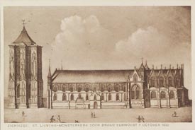 De Toren staat nog altijd overeind, doch een brand in 1832 brengt grote schade aan de Lievemonsterkerk.