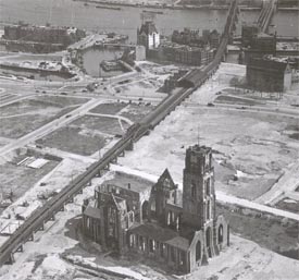 Na bombardementen gedurende de Tweede Wereldoorlog lag Rotterdam grotendeels plat. Ook de Laurenskerk raakte zwaar beschadigt, alleen de muren stonden nog overeind. De meningen waren verdeeld of men de kerk zou herbouwen of slopen. Gelukkig besloot men tot restauratie. In 1952 legde Koningin Juliana de eerste steen voor de herbouw van de Laurenskerk, doch pas in 1968 was de restauratie gereed. De Laurenskerk is het enige middeleeuwse bouwwerk in het centrum van Rotterdam dat is overgebleven.  (Bronnen: v.Lieburg/Okkema/Schmitz Blz.228Wereldsma Blz.156-160Reliwiki.nl  en Wikipedia)